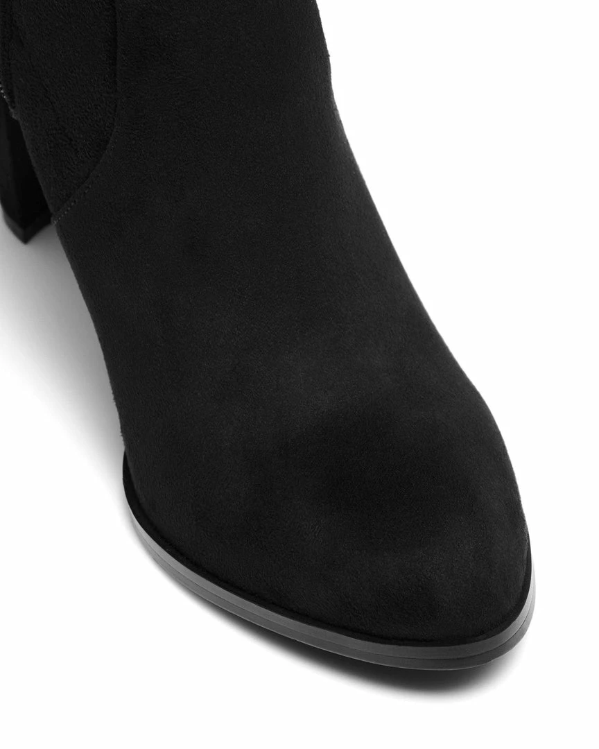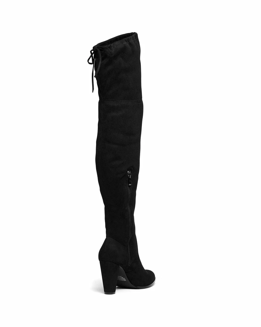 Ambrose by Therapy is a sleek and stylish over the knee stretch faux suede boot with a round toe and covered heel. Perfect to add that little extra something to any outfit.