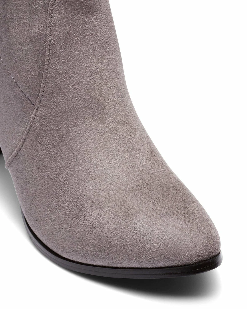Ambrose by Therapy is a sleek and stylish over the knee stretch faux suede boot with a round toe and covered heel. Perfect to add that little extra something to any outfit.