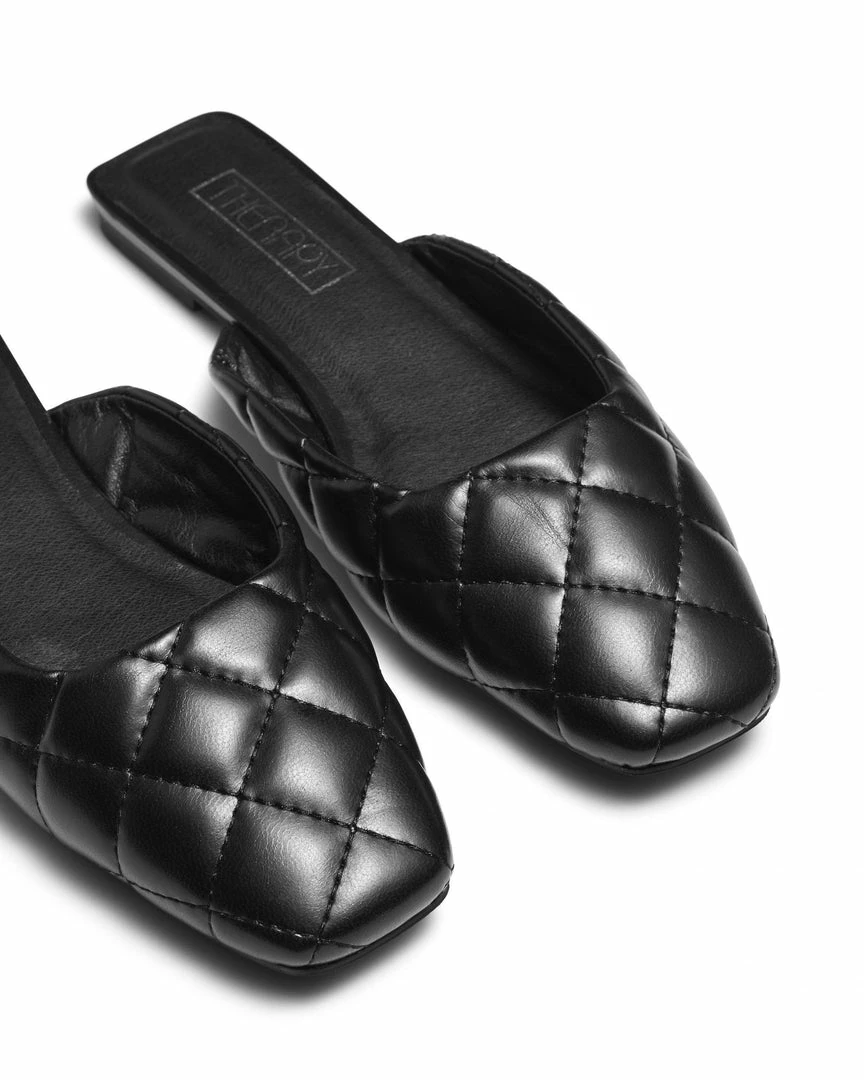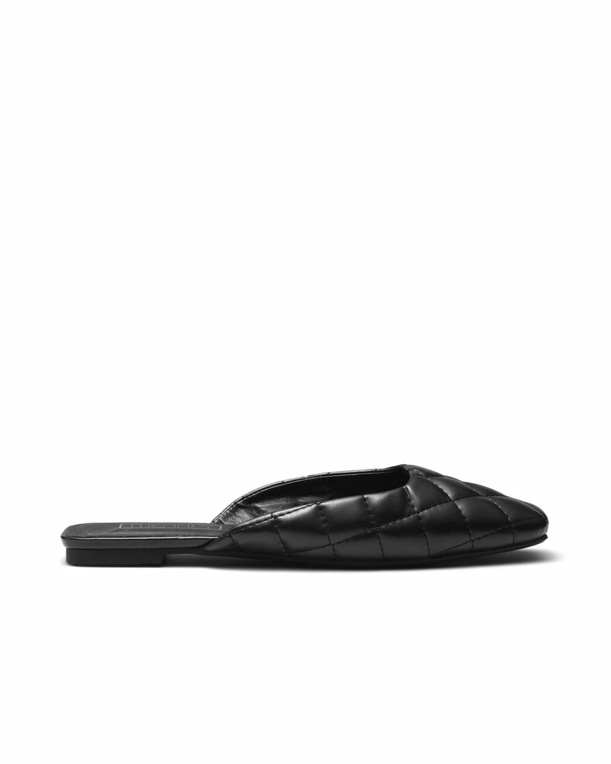 Aurora by Therapy is a cute and easy slip on flat mule, with a quilted upper and square toe. This 90’s inspired flat is perfect for your work day , working from home or even a casual off duty look.