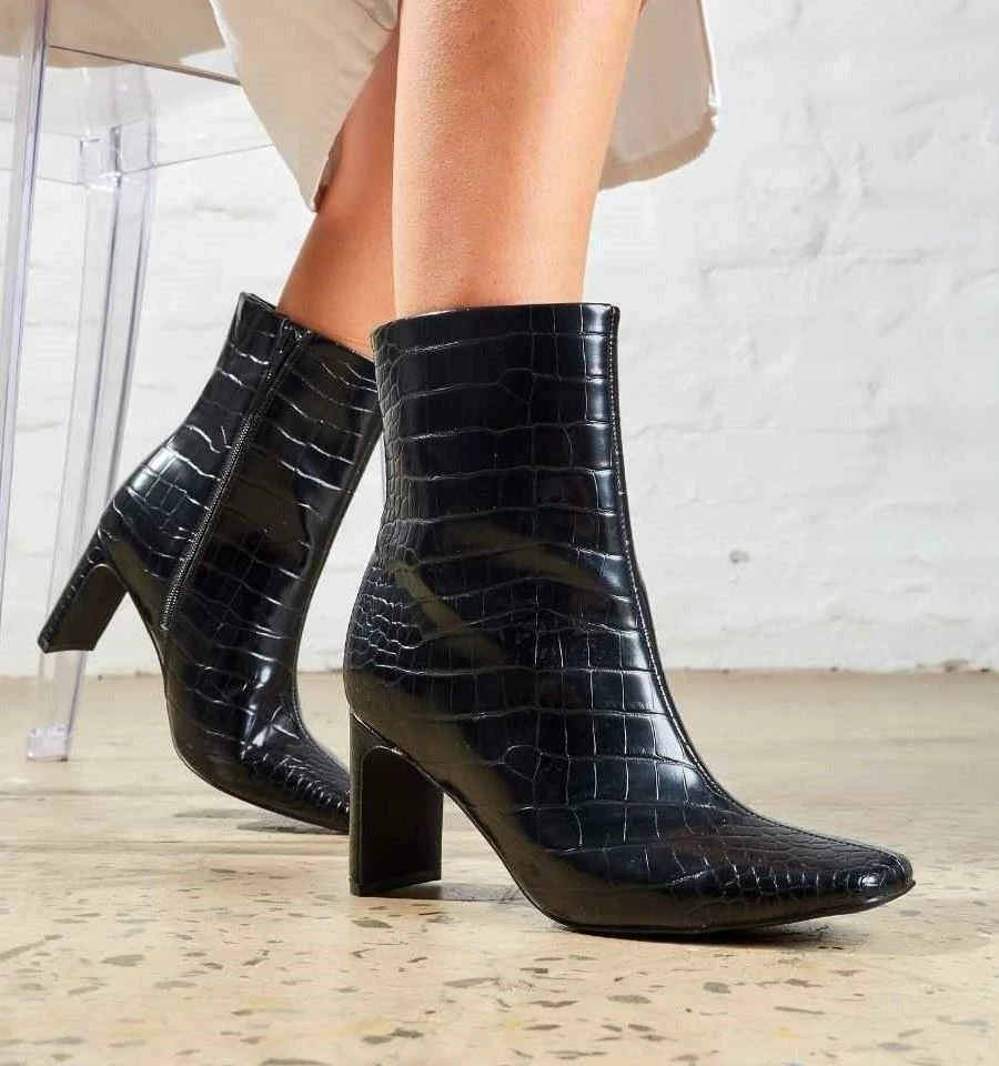 Effie is a stand out ‘IT’ boot, offering a square toe design with croc embossed upper all on a skinny flat heel.