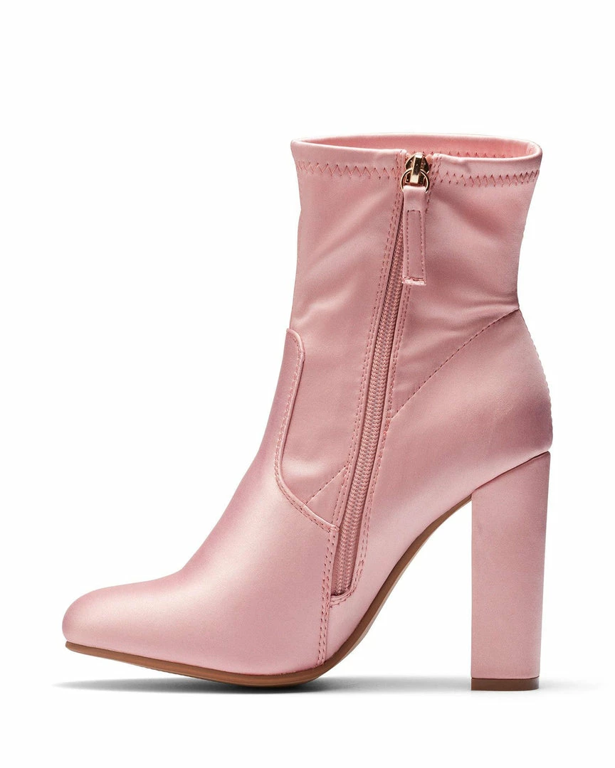 Zeller by Therapy shoes is a a rounded toe ankle boot with inside zip and a slim block heel