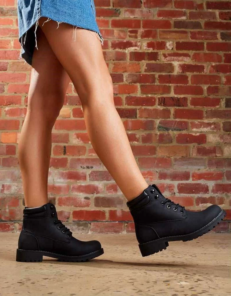 Drew by Therapy is a lace up boot with a bit of an edge. Featuring a cleated outsole and side zip, this boot if the perfect addition to your wardrobe.