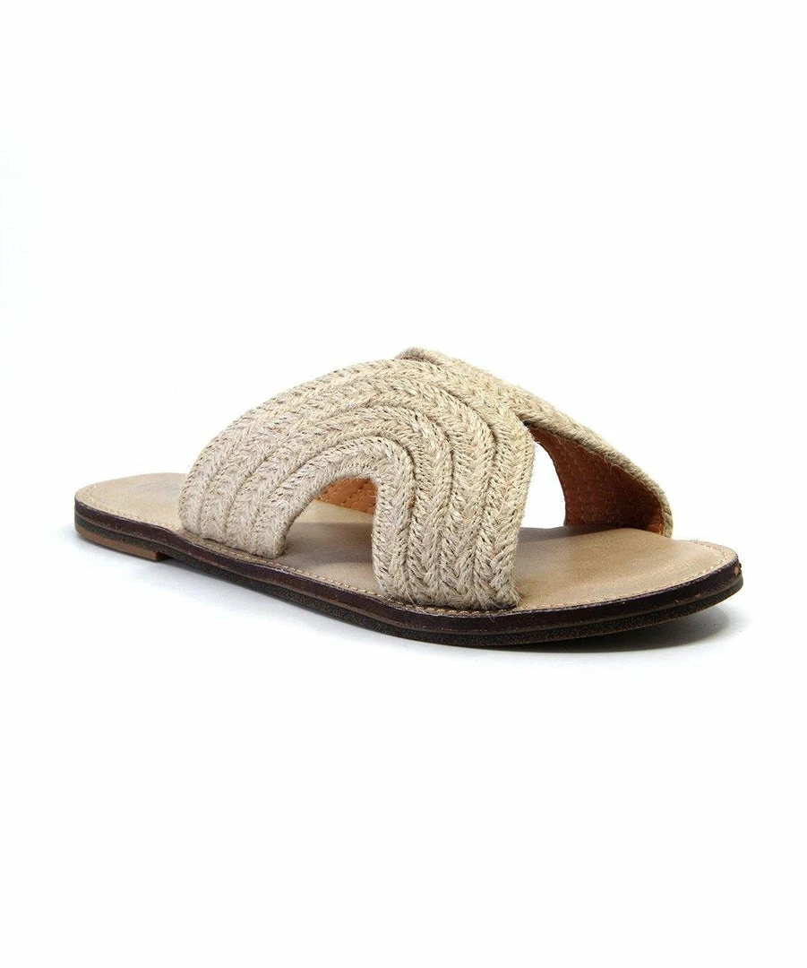 Monzi by Therapy is a new summer slide essential for your wardrobe! Featuring an open toe design with cross over woven rope straps.