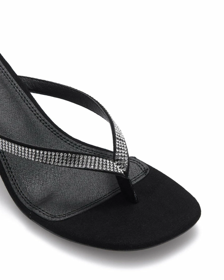 Ines Glitz by Therapy is the statement heel of the season! This diamonte heeled thong features a medium height heel and microfibre upper.