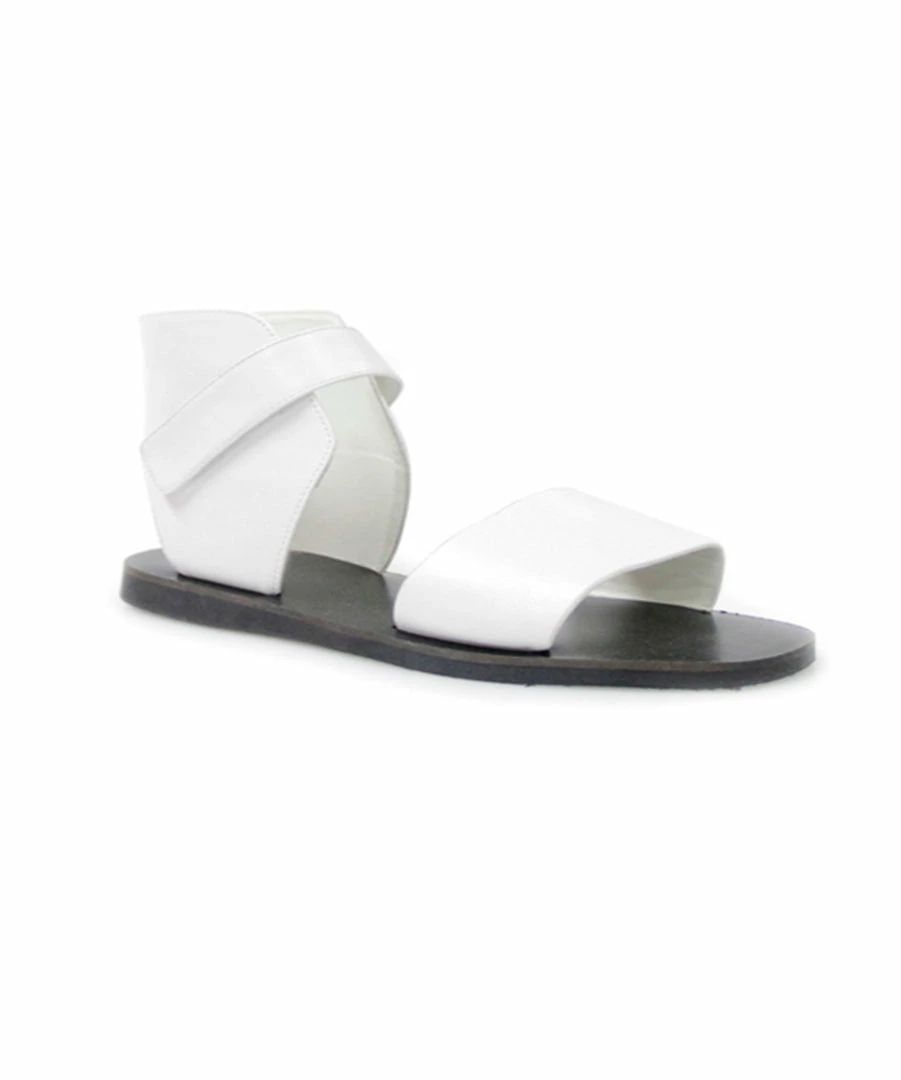 Kennett by Therapy is a high-cut ankle cuff flat sandal with a Velcro strap.