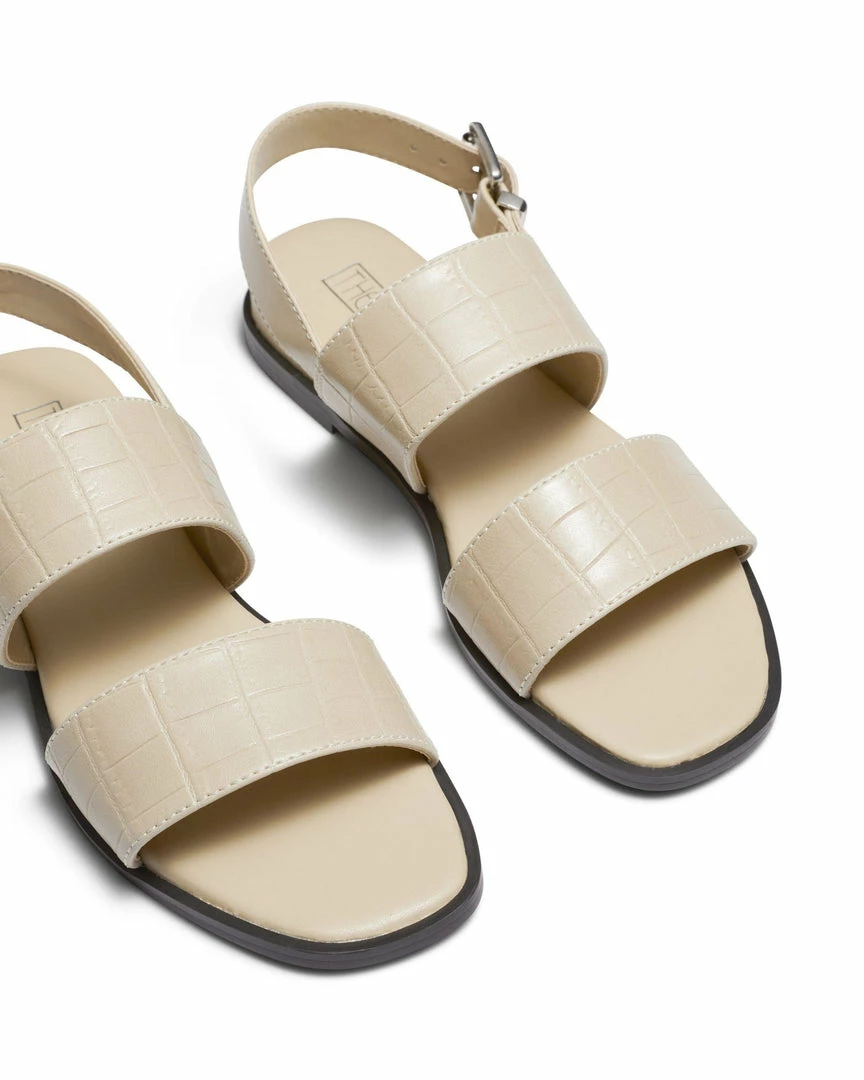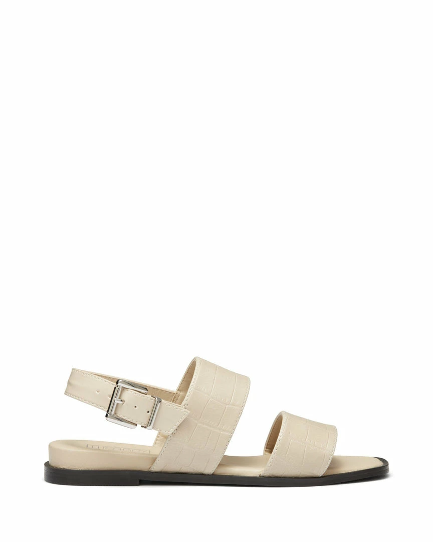 Sparrow by Therapy is the perfect addition to any wardrobe. Featuring a sleek Croc embossed non leather upper and ankle strap with buckle to fasten, this pair is sure to be your new fave!